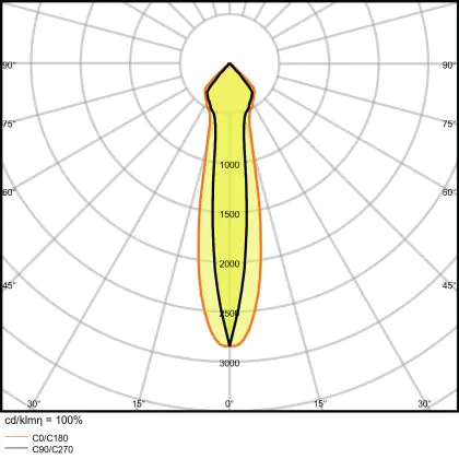 Der Abstrahlwinkel bezeichnet den Winkel, in dem das Licht aus der Lichtquelle ausgestrahlt wird. Er wird in Grad (D) angegeben. Je geringer die Gradzahl des Abstrahlwinkels ist, desto kleiner ist auch der Durchmesser des Lichtkegels, den die Lichtquelle produziert. Beispiel: Wird eine Lampe mit einem Abstrahlwinkel von 60 Grad an der Decke (2,5 m Höhe) angebracht, erzeugt sie einen Lichtkegel von 2,9 Metern Durchmesser. Hat die Lampe hingegen einen Abstrahlwinkel von 120 Grad, beträgt der Lichtkegel 8,7 Meter im Durchmesser. |