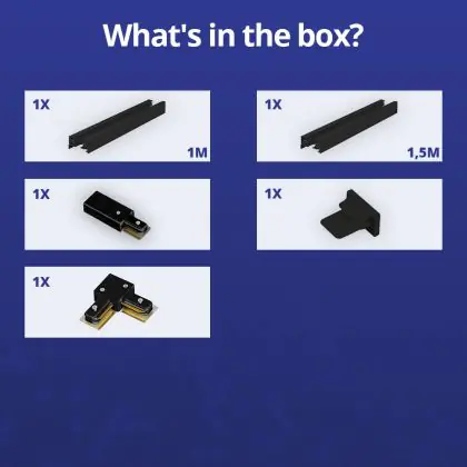 Bright Choice Rail Set Rail Monophasé L 1 x 1,5 Mètre Noir | incl. Embout, Connecteur d’Alimentation et L -Connecteur