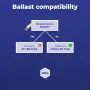 Tous les tubes fluorescents TL5 utilisent un ballast électronique (HF). Les tubes LED utilisent un ballast HF et/ou ils peuvent être installés directement sur 230V (Mains / AC). S'ils fonctionnent sur les deux, on dit qu'ils sont universels (UN). Ce tube fluorescent T5 LED de Budgetlight fonctionne avec un .