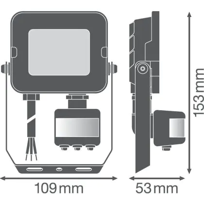 Description Ledvance Projecteur LED Compact Noir 10W 1000lm 100D - 840 | IP65 - Symétrique - Détecteur de mouvement et de lumière
