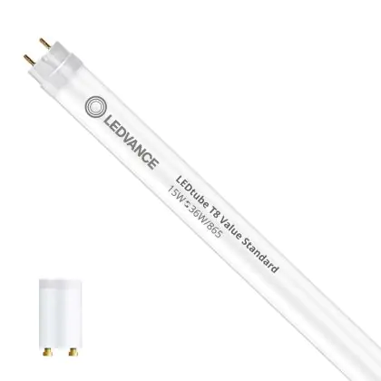 Ce tube LED Ledvance tube LED 120cm | 6500K 15W - Value est l’un des produits les plus éconergétiques en remplacement des tubes T8 classiques. Avec ce tube LED vous êtes donc assuré de sa qualité. Avec une puissance de seulement 15 W, ce tube LED a la même intensité lumineuse qu’un tube classique qui consomme 36 W.